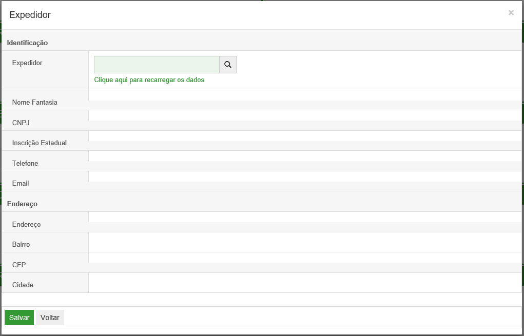 Em Expedidor, clique em Selecionar e informe o expedidor do CT-e. Após informar, clique em Salvar.