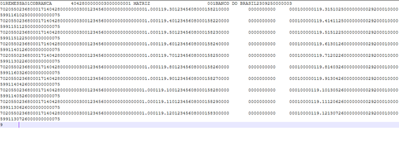 Exemplo de Remessa Bancária gerada na [R215].