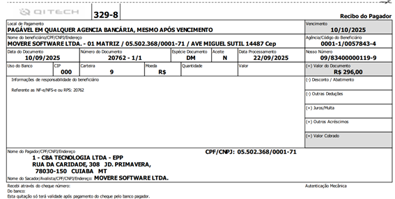 Boleto emitido na [R249], com a configuração adotada da [R75].