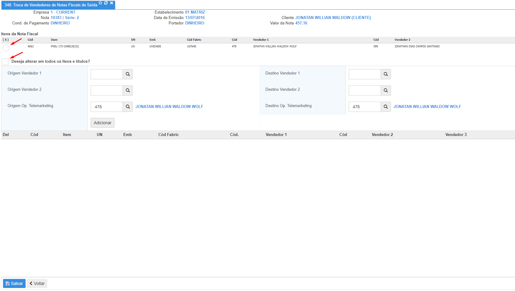 A rotina 348-Troca de Vendedores de Notas Fiscais de Saída realiza além da troca do vendedor 1, 2 e 4, também realiza a troca de múltiplos vendedores por item em vendas com múltiplos vendedores 3 nos itens de venda.