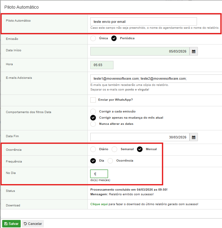 Configurando para receber o e-mail pelo Piloto Automático, periodicamente: