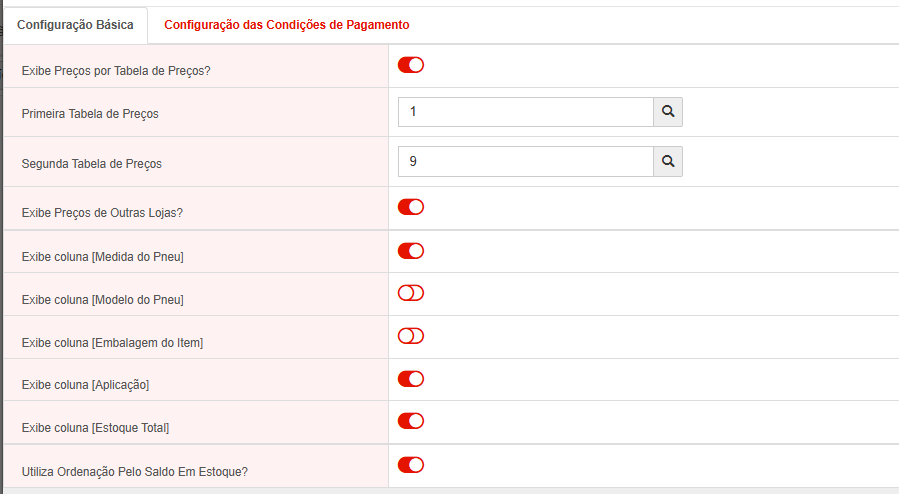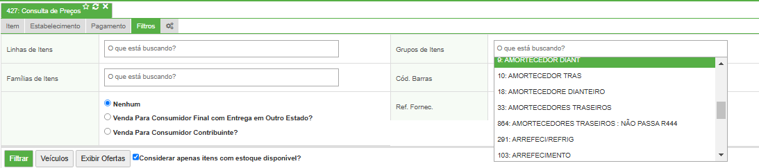 Além desses filtros, o sistema permite consultar preços de itens conforme a atividade do cliente: