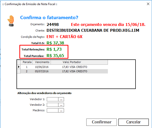 O campo Total Retenções é composto pela soma dos valores retidos dos impostos baixo: