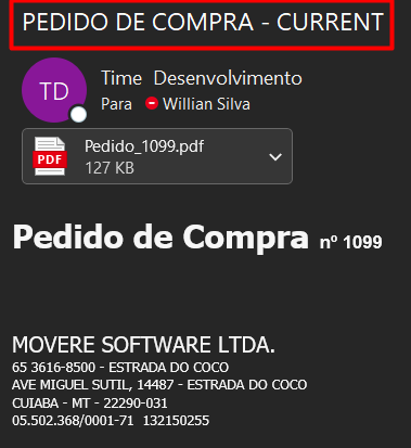 - Obs.: Caso o paramêtro não seja configurado o padrão do titulo será: "Pedido de Compra + Nome da Empresa"