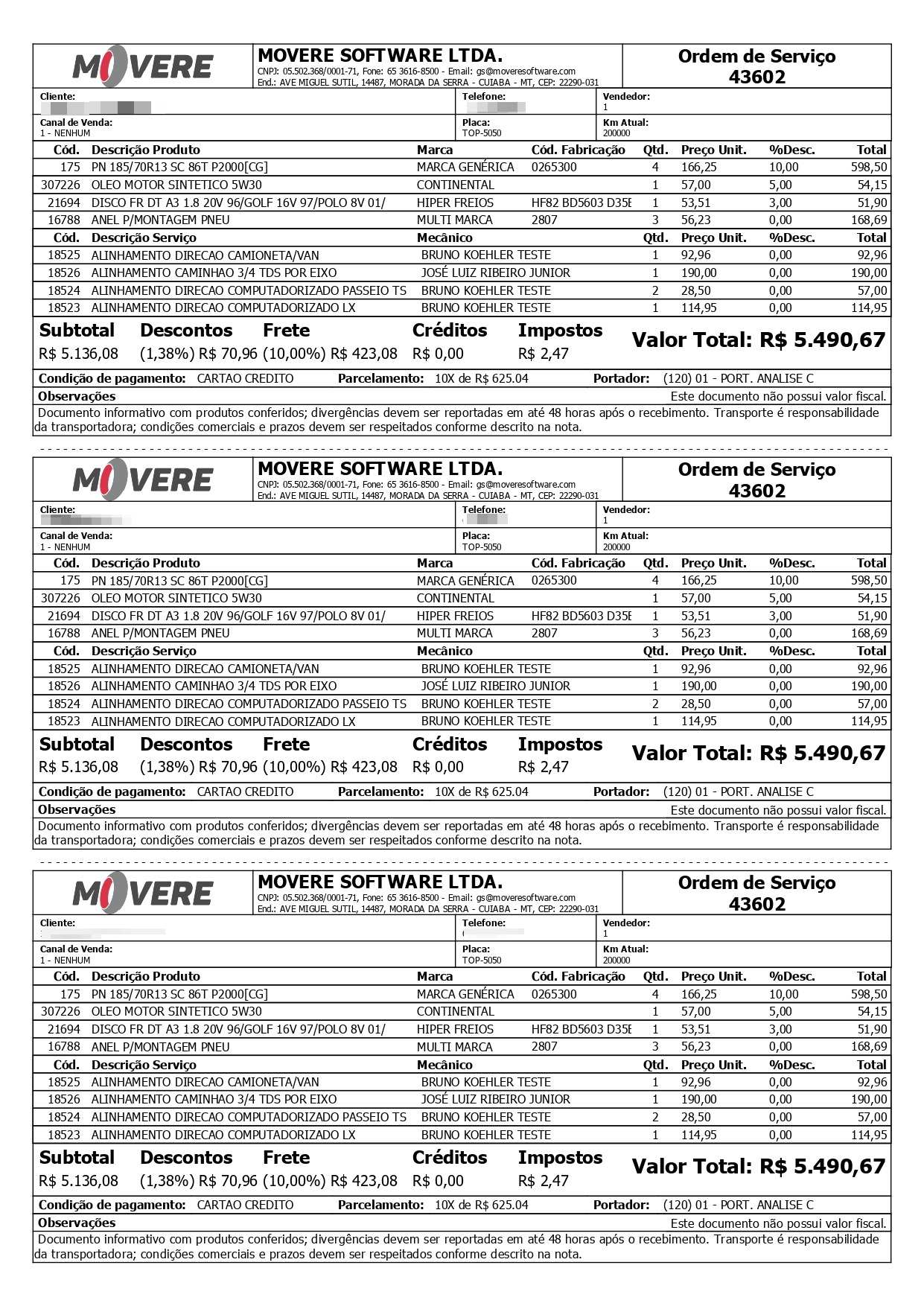 No modelo personalizado V3 permite a impressão da cotação/O.S com 3 vias replicadas na mesma página, otimizando a distribuição do documento e eliminando a necessidade de múltiplas impressões para a mesma ordem de serviço. com configuração disponível na R33 - Parâmetros por Estabelecimento, por meio do parâmetro 1095.