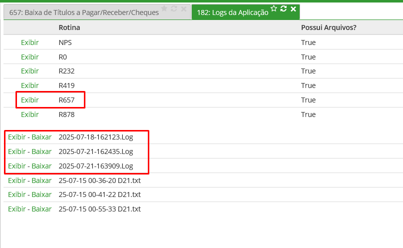 A partir deste momento, as informações na R657 será gerado em um arquivo na pasta definida, além disso também será salvo automaticamente nos logs da Rotina [R182 - Logs da Aplicação].
