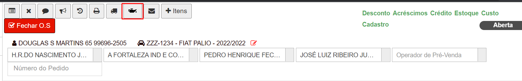 Atualmente a etiqueta de Óleo está disponível apenas para rotina [R11 - Fast Checkup], para realizar impressão da etiqueta de Óleo basta acessar orçamento e clicar sob ícone ilustrado a baixo na parte superior do orçamento.