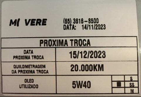 Data máxima próxima troca de óleo(em dias): Informações recomendadas pelo fabricante de meses/dias máxima até próxima troca do óleo.