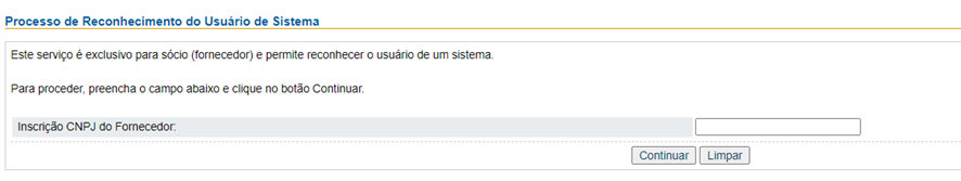 6. Ao acessar essa opção, abrirá uma tela na qual você deverá informar o CNPJ da MOVERE - 05502368000171. Informe clique em continuar.
