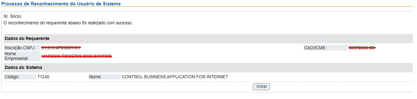 9. Ao clicar em Reconhecer, basta seguir nas novas telas que irão aparecer para confirmação. Após confirmar, a tela abaixo será apresentada. Com isso, o processo estará feito e então basta o time responsável configurar o MOVERE para emissão da NF-e ou NFC-e.