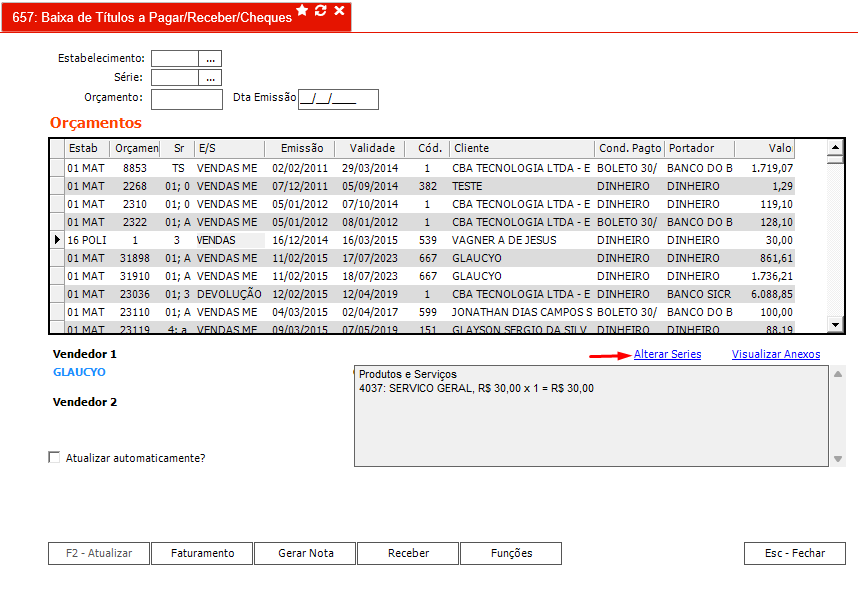 Após clicar no botão será exibida a janela para alteração de serie: