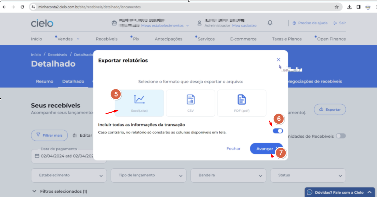 3. Passos para baixar o extrato Excel dos recebíveis na Cielo