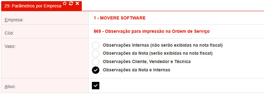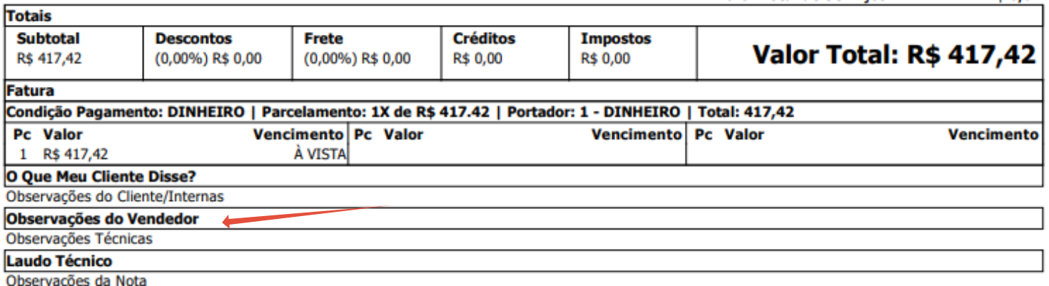 Para este impresso a opção a ser utilizado é "Observações Cliente, Vendedor e Técnica". A opção "Observações da Nota e Internas", nesse cenário, inclui apenas as "Observações Internas" e "Observações da Nota", como na imagem abaixo: