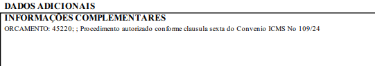 Procedimento autorizado conforme cláusula sexta do Convênio ICMS Nº 109/24