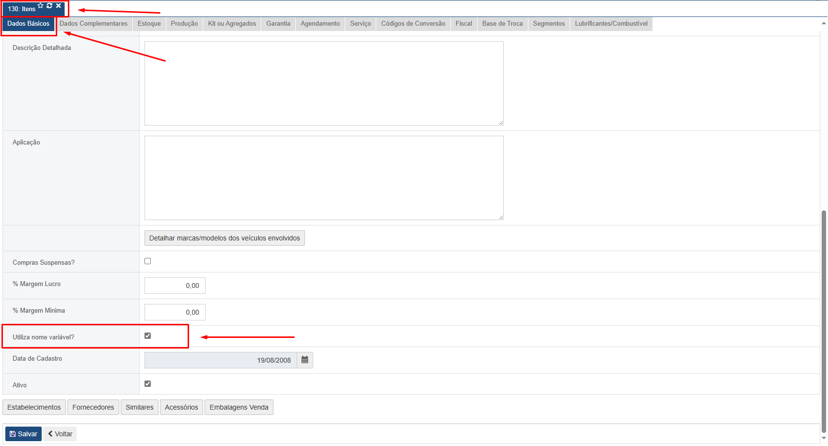 - Configurações na R179 - Itens/Embalagens de Venda: