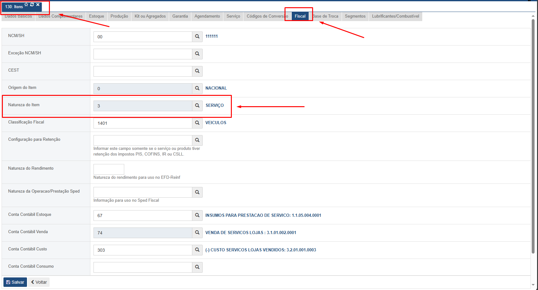 Dado a usabilidade do Item base Categoria, o mesmo precisa assumir características especificas no sistema para ser aceito na configuração.- Configurações na R130 - Itens: