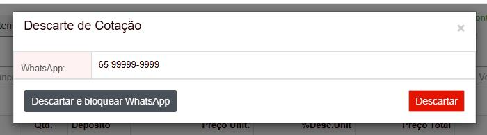 Agora, ao descartar uma cotação originada pelo Comunicar, é possível não apenas descartá-la, mas também bloquear o número de WhatsApp, impedindo que novas cotações sejam geradas automaticamente a partir de novas mensagens.