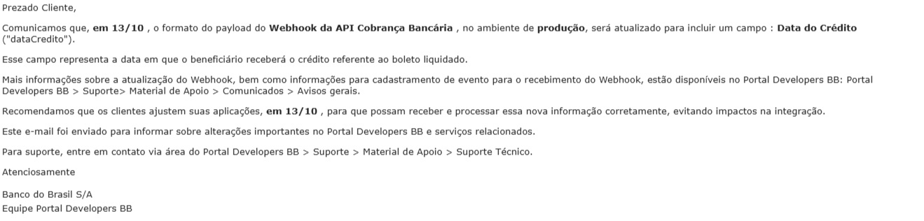 Segue comunicado do banco do brasil: