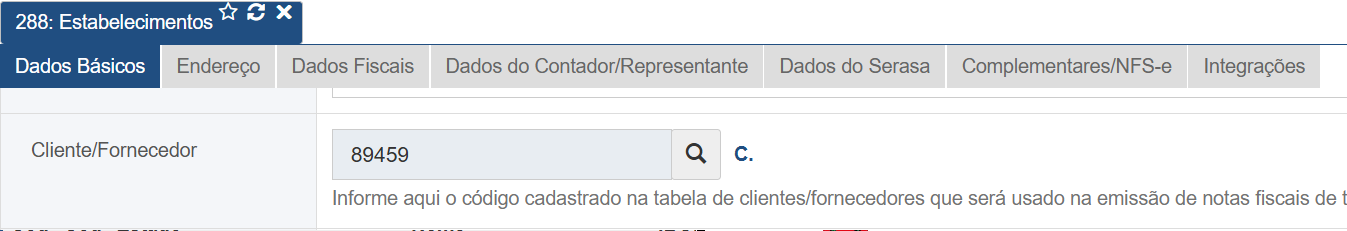 Depois de cadastrar, basta informar o código na R288 - Estabelecimentos - Aba Complementares/NFS-e: