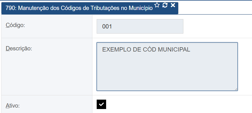 Acesse a rotina 790 - Manutenção dos Códigos de Tributações no Município, em "Novo":