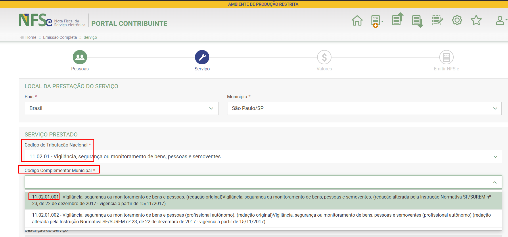 IMPORTANTE: Para saber mais sobre o Código de Tributação Nacional, acesse este tópico: Perguntas e respostas: Quais novas informações preciso enviar?