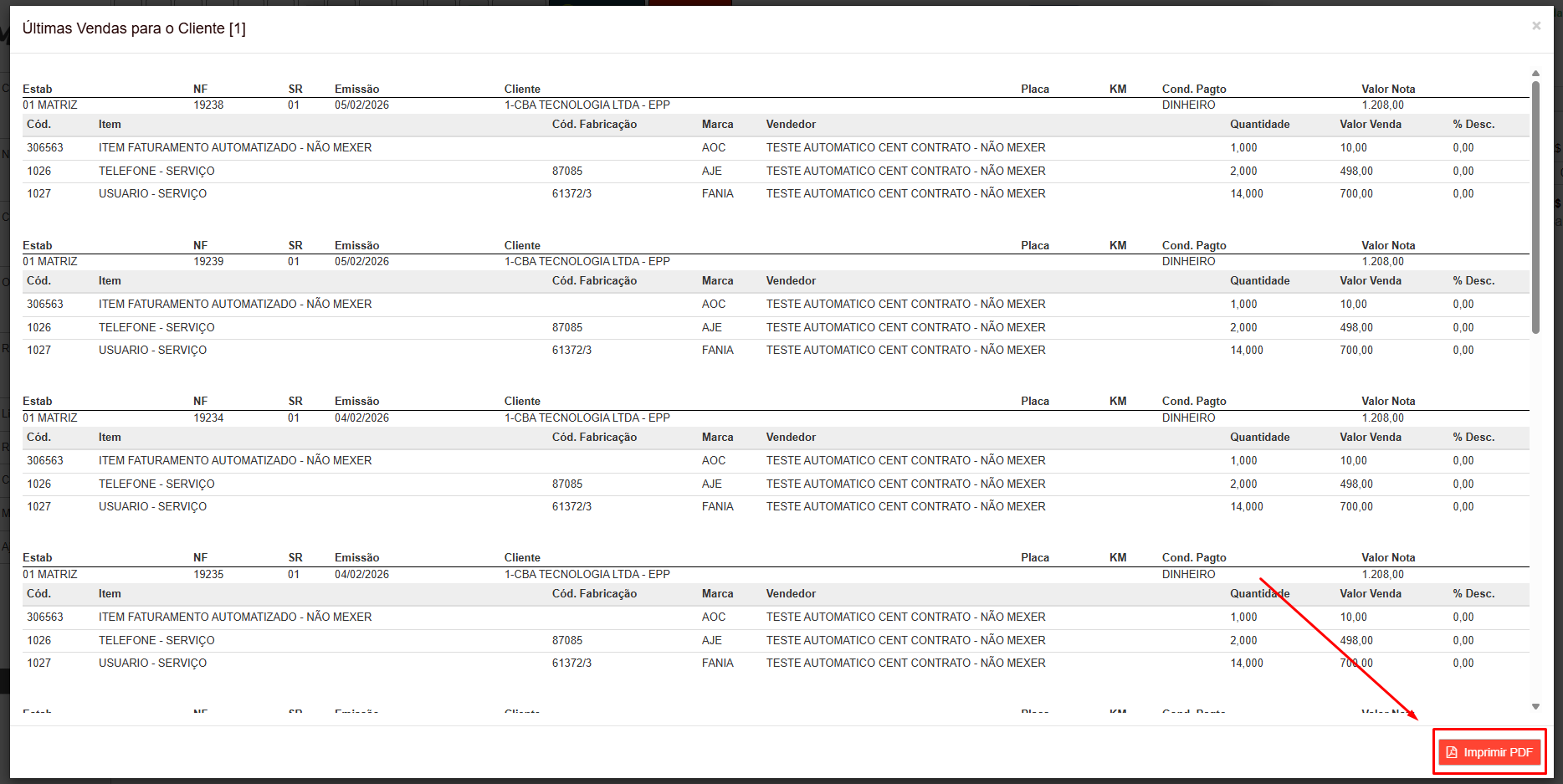 Impressão de últimas vendas do cliente - R11 Fast Checkup Imprimir