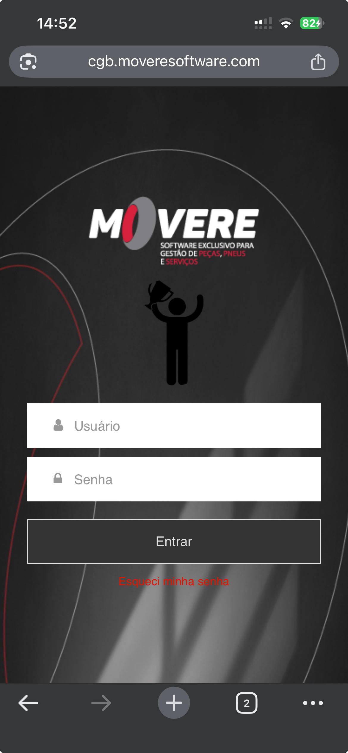 Para realizar a liberação de venda, utilize qualquer navegador do seu celular (Google Chrome, Internet Explore e outros) e acesse o endereço principal do seu MOVERE.