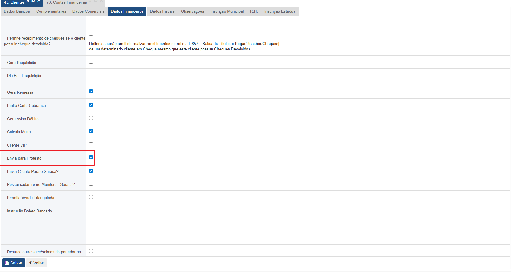E por ultimo marcar a flag 'envia para protesto' na R43 aba 'dados financeiros'